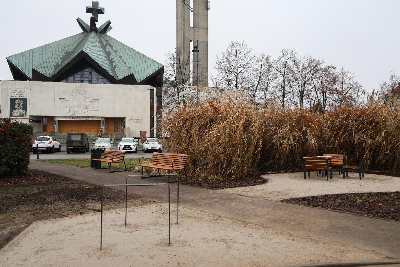 Wymieniono również stare kosze na odpady na nowe eleganckie czarne modele. Te będziecie oglądali znacznie częściej na dzielnicy, bo dzielnica zamierza stosować je przy kolejnych inwestycjach w przestrzeni publicznej.