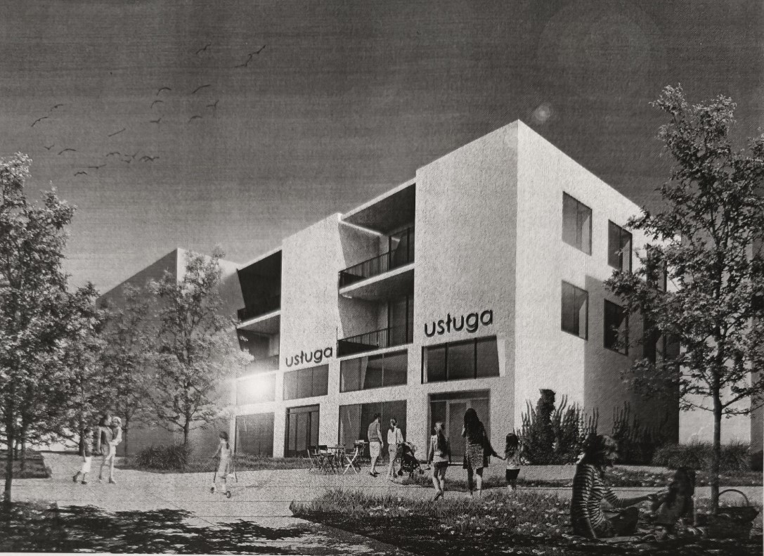 Propozycja zawiera także projekt urządzenia zieleńca między pawilonem a ul. Wólczyńską