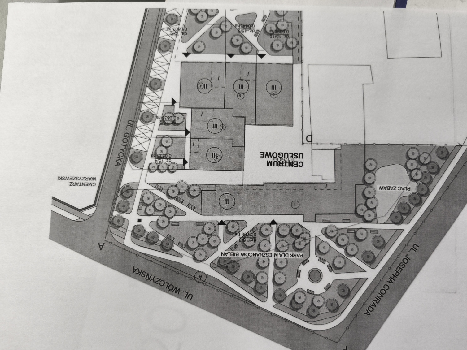 Odnośnie planu zagospodarowania przestrzennego należy podkreślić, że jest to akt prawa miejscowego i wszelkie jego ustalenia są powszechnie wiążące na obszarze, na którym obowiązuje. Zapisy miejscowego planu zagospodarowania przestrzennego osiedla Chomiczówka cz. III - rejon cmentarza Wawrzyszewskiego obejmujące przedmiotowy obszar regulują sposób i możliwości jego zagospodarowania, określając przeznaczenie. Zgodnie z niniejszym aktem prawnym część nieruchomości położonej w Warszawie przy ulicy Wólczyńskiej 55/57 przeznaczona jest pod zabudowę wielorodzinna lub usługi (1MW/U), zaś pozostała część pod terenu zieleni urządzonej (1ZP).