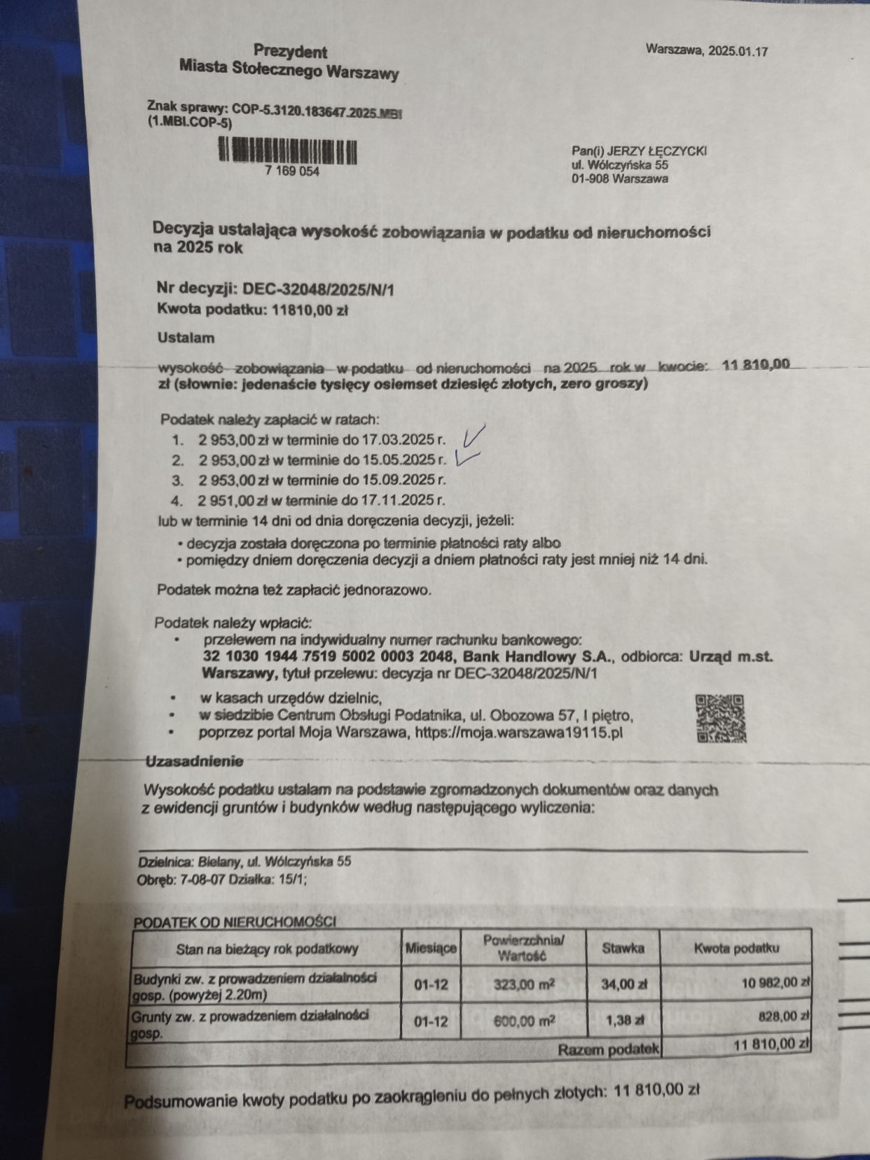 Pan Jerzy Łęczycki od samego początku płaci podatek gruntowy, płacąc za grunt o powierzchni 600 m kw. Na tym gruncie chcą teraz rozbudowywać ul. Gotycką