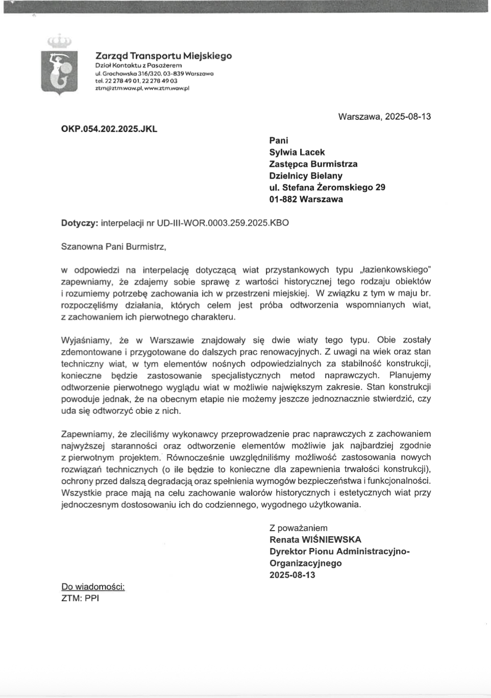 Interpelacja oraz odpowiedź ZTM