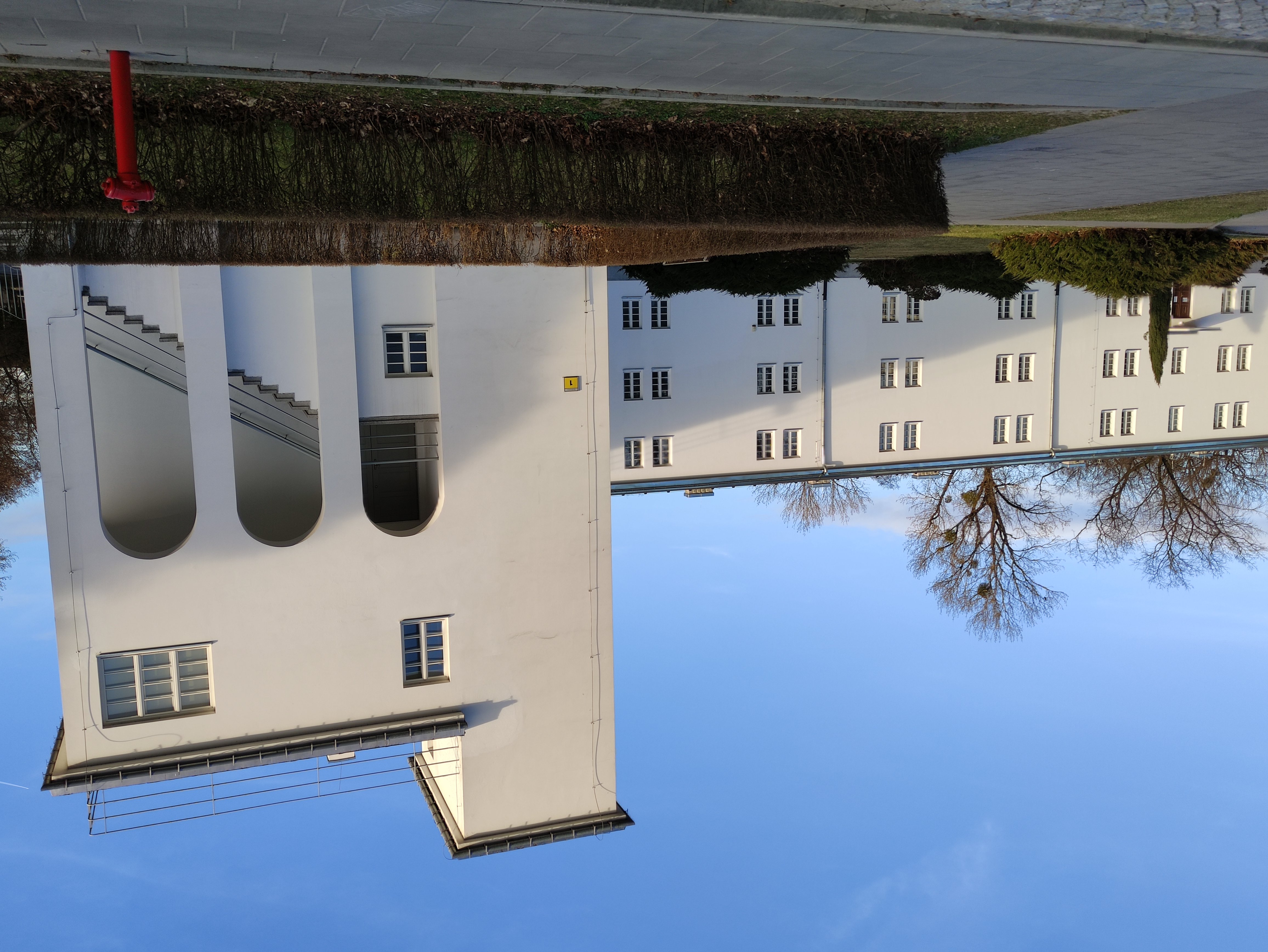 Do narożnika tego skrzydła od strony dziedzińca dostawiono siedmiokondygnacyjną wieżę, pełniącą jednocześnie funkcję wieży ciśnień, komina kotłowni oraz budynku mieszkalnego dla pracowników uczelni. Stanowi ona dominantę przestrzenną całego założenia.