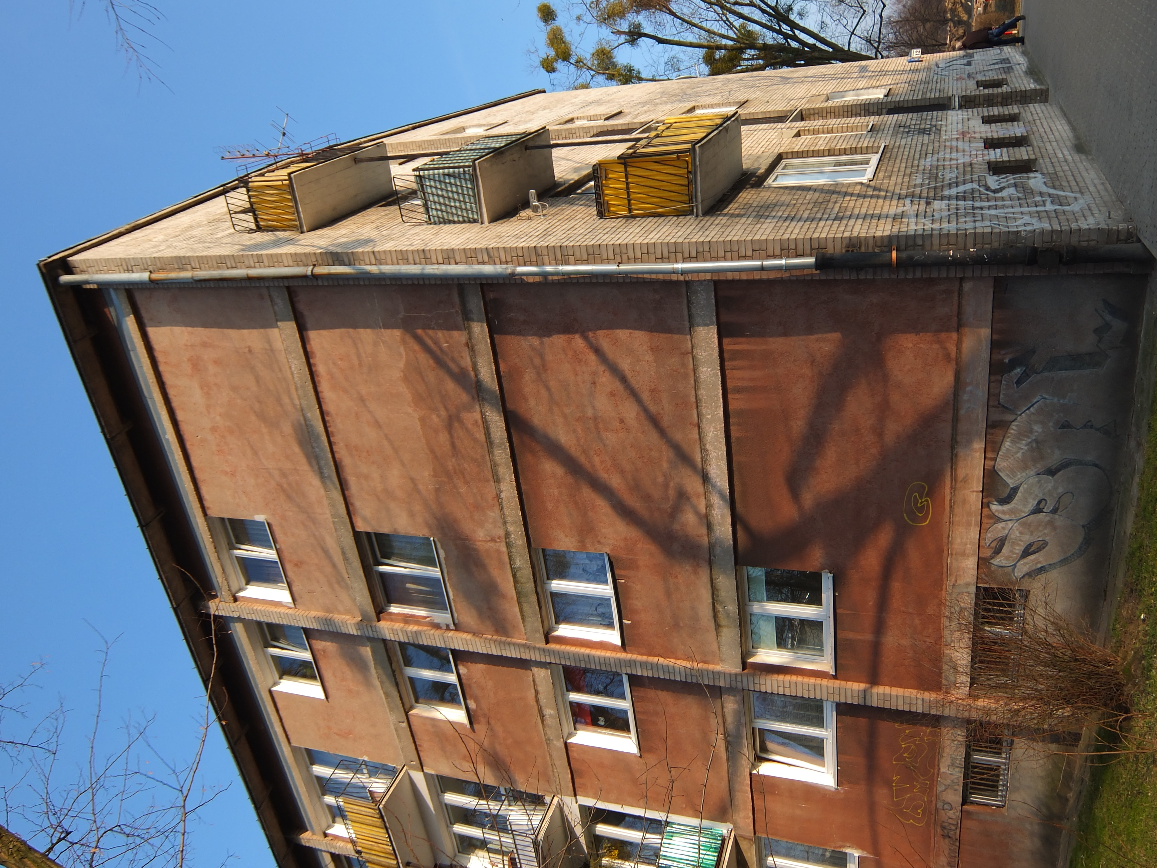 Ciekawym obiektem na terenie zespołu IV jest również budynek przy ul. Kasprowicza 12. W odróżnieniu od pozostałych budynków klatkowych posiadał on otynkowane ściany osłonowe. Cegła silikatowa była widoczna jedynie w zwieńczeniach ścian poprzecznych i szczytowych, stanowiących element konstrukcyjny. W wyniku termomodernizacji również tutaj zniknęła pod warstwą ocieplenia. Zmieniono także kolor elewacji – pierwotnie kawowy, obecnie bordo. Ten niewielki, czterokondygnacyjny budynek punktowy wraz z sąsiadującym „igrekiem” stanowi swoistą wizytówkę – bramę od strony Serka Bielańskiego. Jednocześnie zapowiada zabudowę młodszych Bielan III przy ul. Magiera i nawiązuje do Serka Żoliborskiego projektu Jacka Nowickiego.