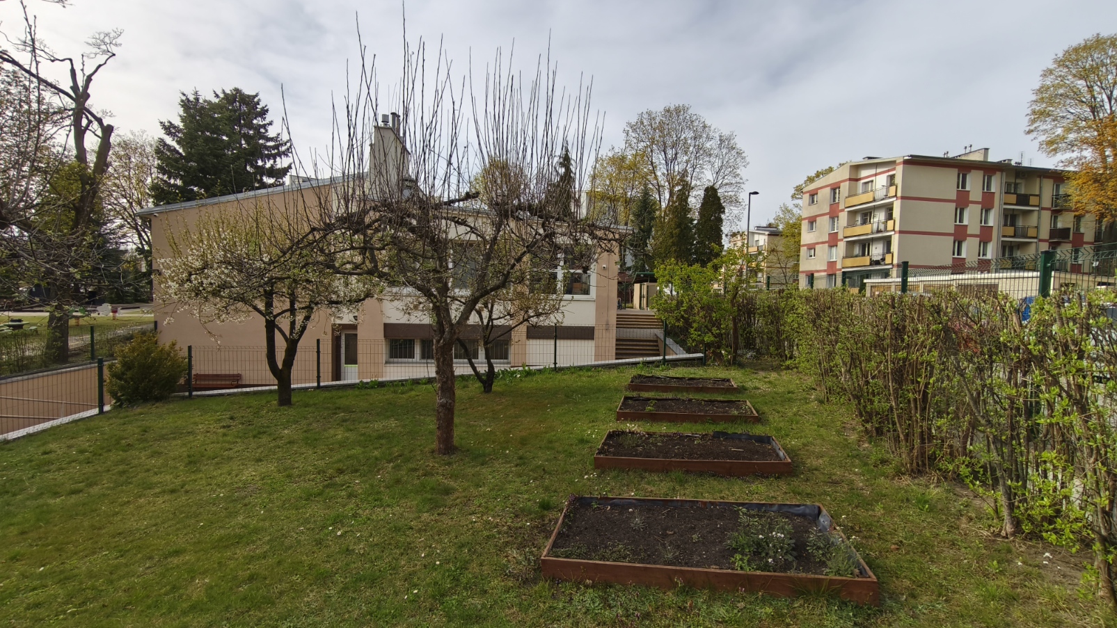 Na terenie osiedla znajduje się Przedszkole nr 245 dla Dzieci Słabowidzących, mieszczące się w kameralnym, parterowym budynku o charakterze pawilonowym. Drugie przedszkole, nr 181 „Wesołe Nutki”, zlokalizowane nieco bardziej na północ, mieści się w większym, dwukondygnacyjnym obiekcie o bardziej typowej formie. Centralnym punktem osiedla jest duży plac zabaw otoczony przedszkolami oraz czterema sześciokondygnacyjnymi budynkami punktowymi. Tego typu punktowców na terenie całego zespołu IV znajduje się sześć. Pozostałe budynki to obiekty klatkowe, z których większość usytuowano w układzie grzebieniowym między ul. Pruszyńskiego a ul. Marymoncką.