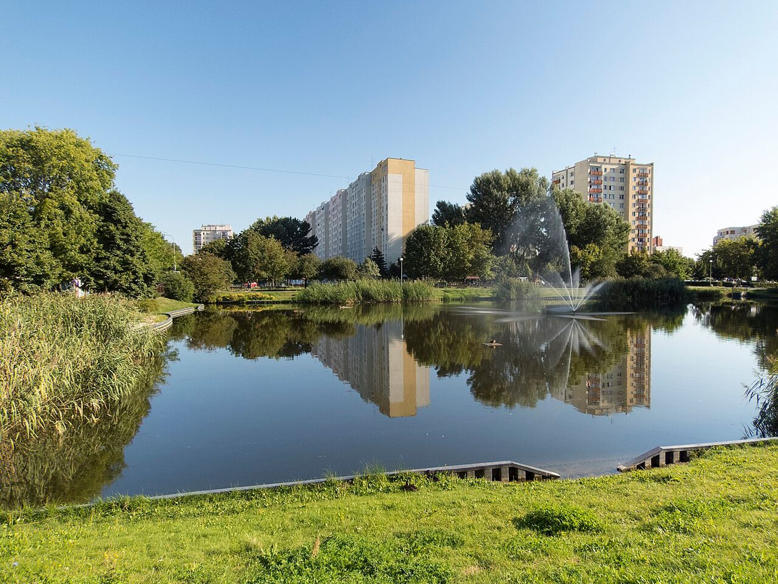 Popularne miejsce spotkań mieszkańców. Spacer wokół stawów to świetny sposób na relaks, a jednocześnie okazja do obserwacji miejskiej przyrody.